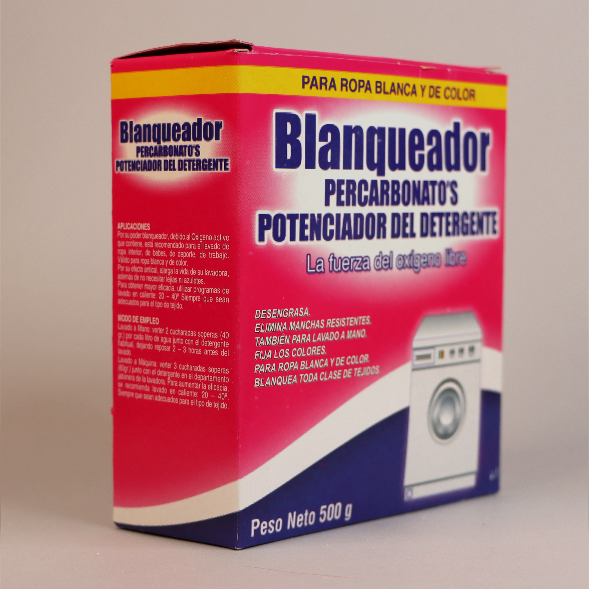 En el caso de lavado a máquina, verter tres cucharadas soperas (sobre unos 60 gramos) junto con el detergente en el departamento de la jabonera de la lavadora.